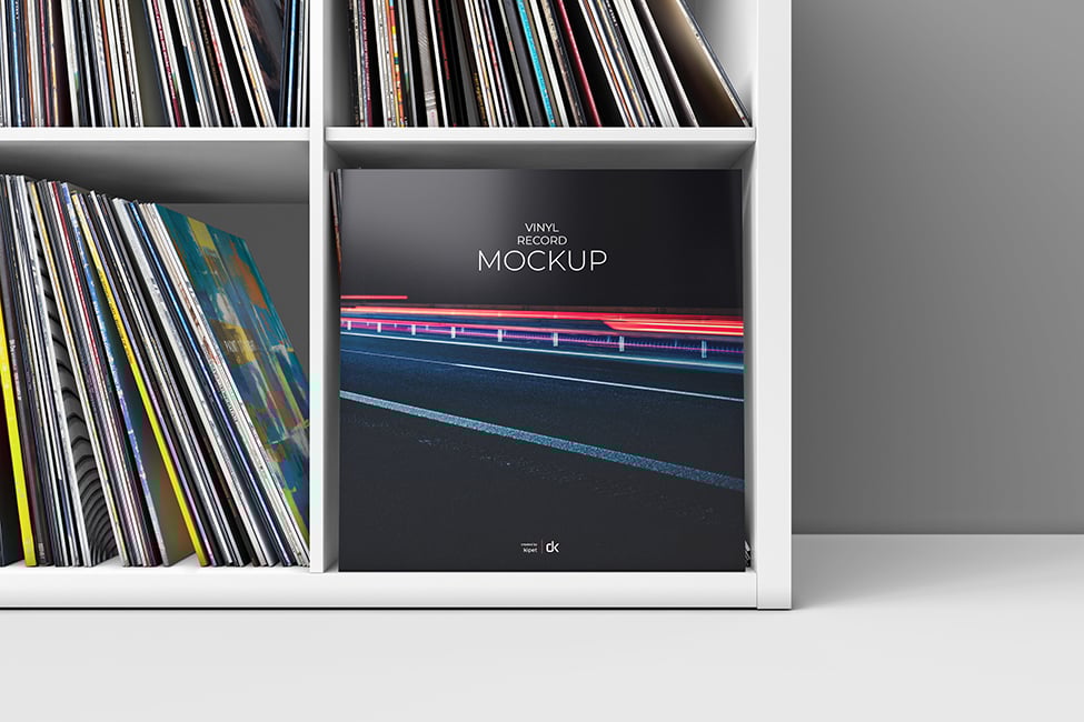 1 scene from the Vinyl Record Mockup 4 that has 12 perspectives ready for presenting your album artwork or any similar format design in a realistic environment, you can choose to use it as it is or explore the wide range of customizable stuff like textures and colors of vinyl, textures on walls and floors, editable paper and vinyl glossiness and ambient occlusion, shadow intensity etc. All perspectives were modeled and rendered with physically correct dimensions and light setups. Mockup is highly editable. Shadows, objects and ambient highlights are separated.